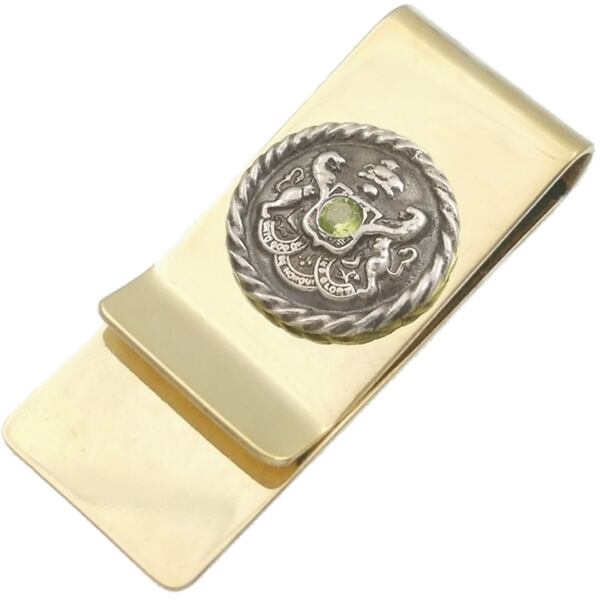 (8月)ペリドット アンティーク エンブレム スリム ブラス マネークリップ 誕生石*BM-1051
