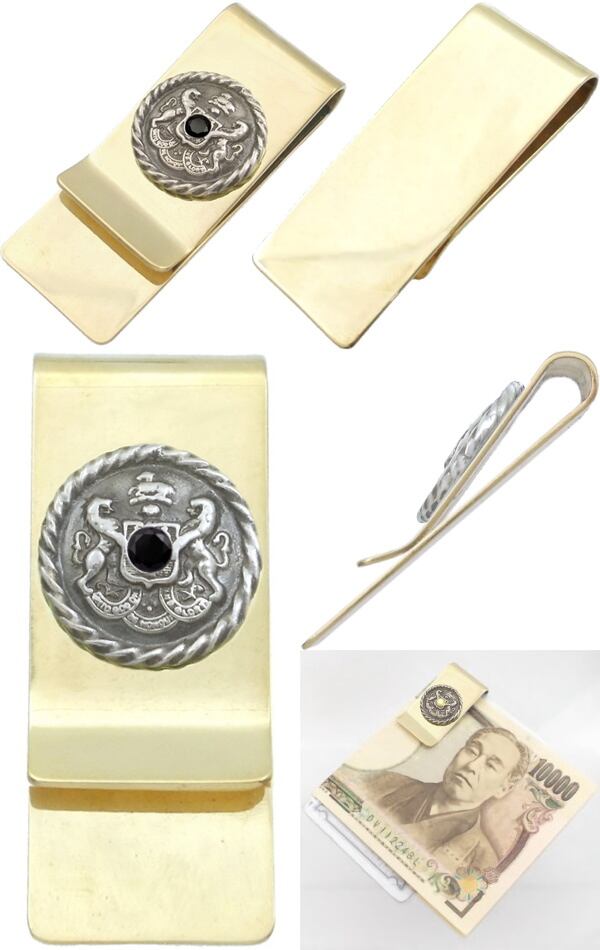 ブラックCZ アンティーク エンブレム スリム ブラス マネークリップ*BM-1051