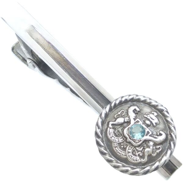(11月)ブルートパーズ アンティーク エンブレム シルバー ネクタイピン 誕生石*BN-1016