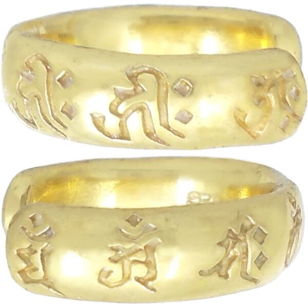 十二支を表す梵字、キリーク、タラーク、マン、アン、サク、バン、カーン、アークの守護本尊、八神が彫りこまれたカフ。