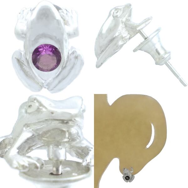 (2月)アメジスト ホワイト フロッグ シルバー ピアス 誕生石*BE-1041