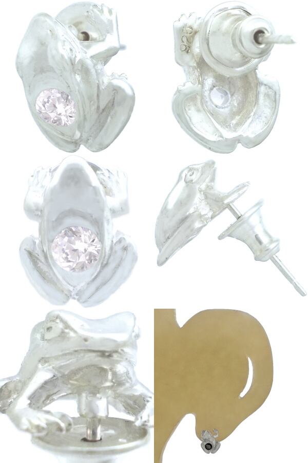 (4月)ジルコニア ホワイト フロッグ シルバー ピアス 誕生石*BE-1041