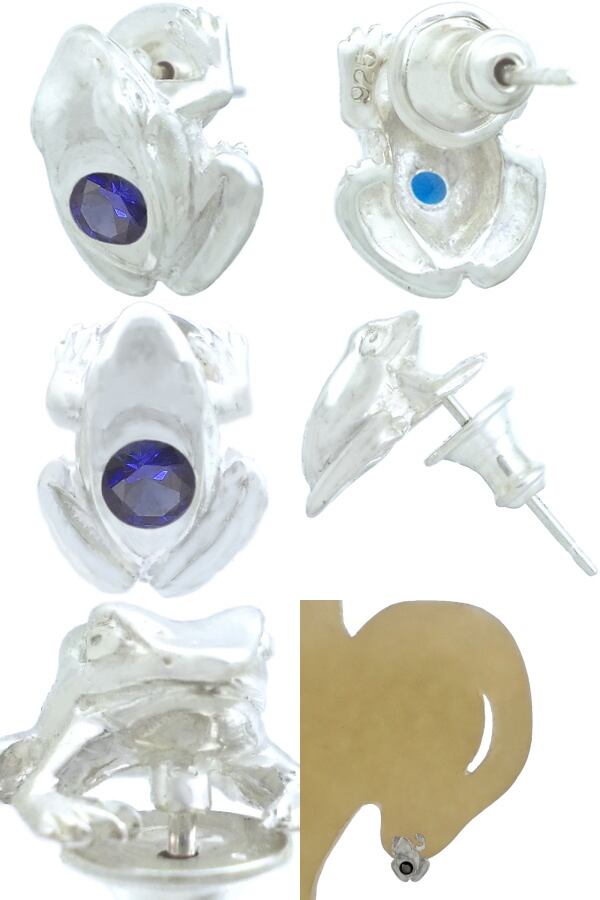 (9月)サファイア ホワイト フロッグ シルバー ピアス 誕生石*BE-1041