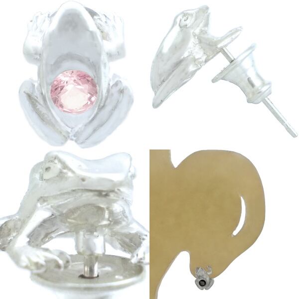 (10月)ピンクトルマリン ホワイト フロッグ シルバー ピアス 誕生石*BE-1041