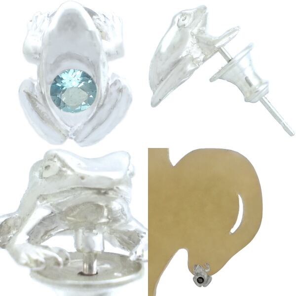 (11月)ブルートパーズ ホワイト フロッグ シルバー ピアス 誕生石*BE-1041