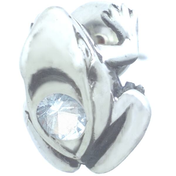 ホワイト仕上げと燻し仕上げのかえるのデザイン。無事帰る、福カエルなどの縁起が良いと言われる蛙モチーフと誕生石を含むストーンとの幸運のコンビネーション。