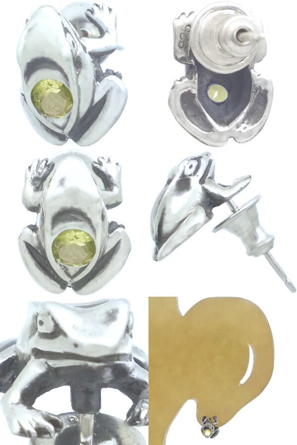 (8月)ペリドット ブラック フロッグ シルバー ピアス 誕生石*BE-1042