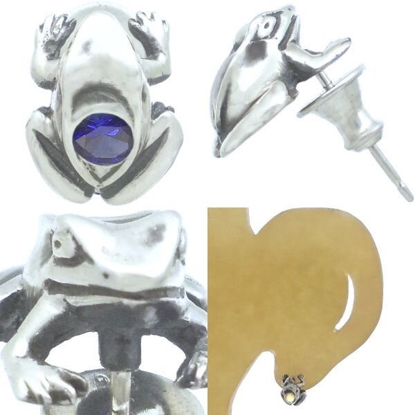 (9月)サファイア ブラック フロッグ シルバー ピアス 誕生石*BE-1042