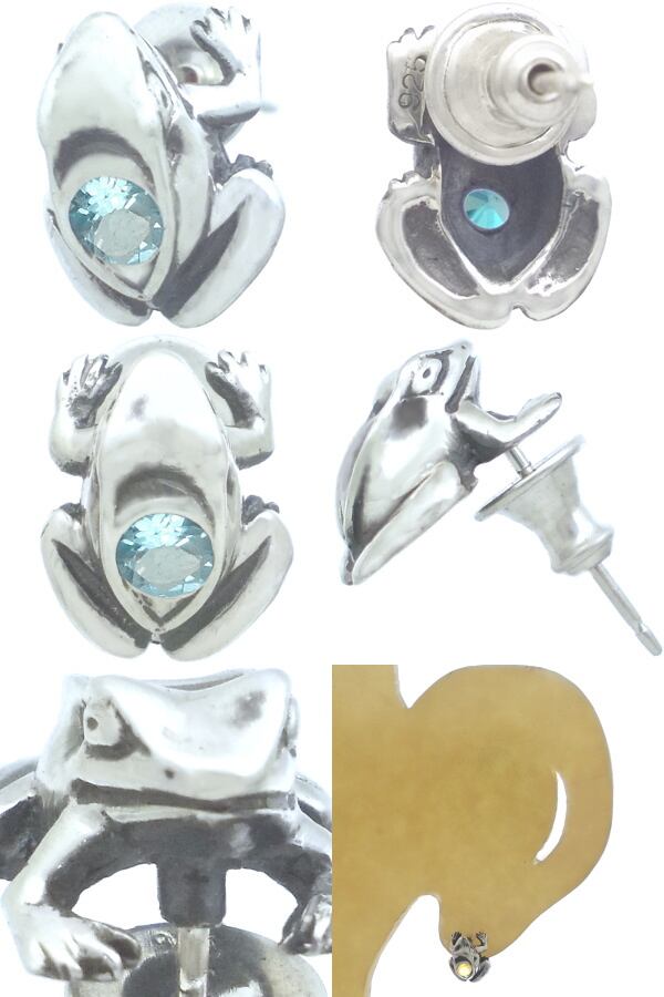 (11月)ブルートパーズ ブラック フロッグ シルバー ピアス 誕生石*BE-1042