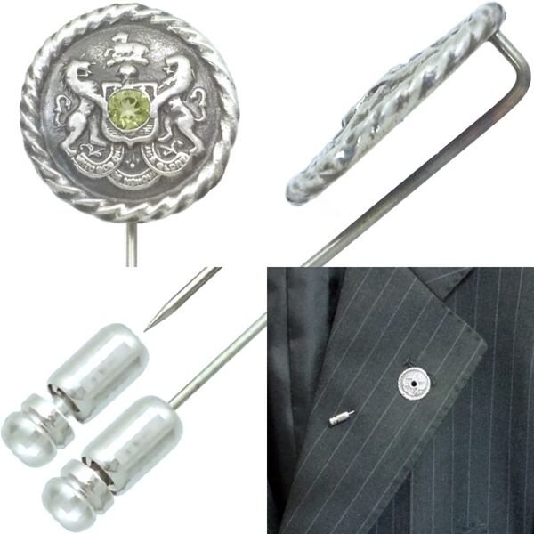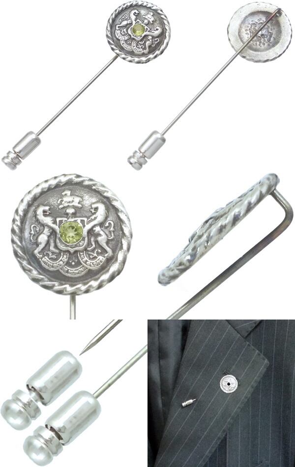 ★クラシックなヨーロッパのエンブレムデザインとバースデーストーンのラペルピン。