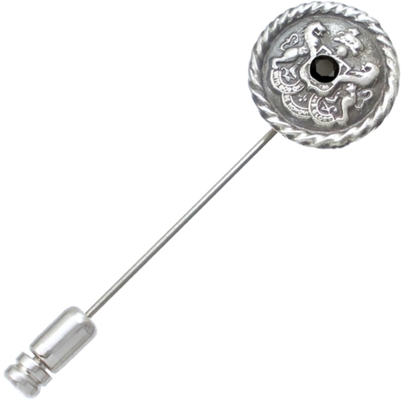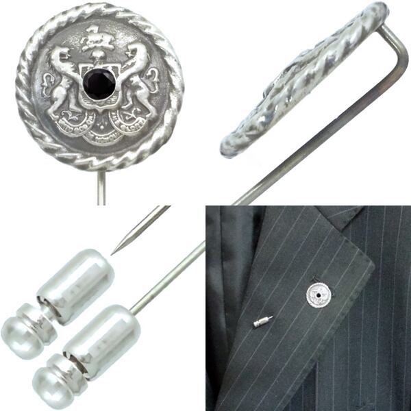 ブラックCZ アンティーク エンブレム シルバーラペルピン*BK-1237