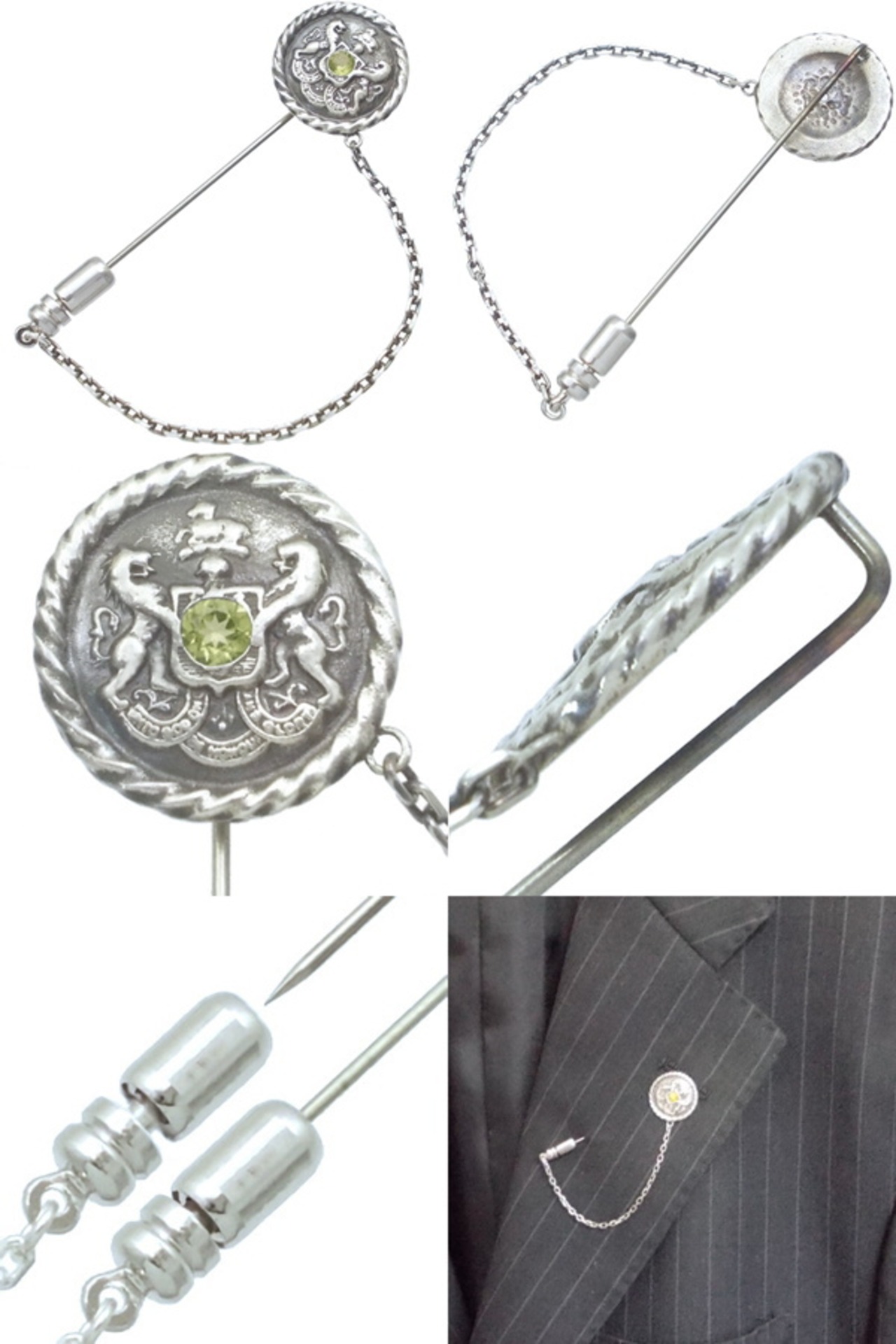 (8月)ペリドット アンティーク エンブレム チェーン シルバーラペルピン 誕生石*BK-1238