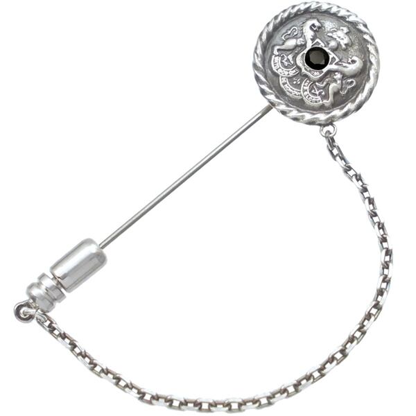 ブラックCZ アンティーク エンブレム チェーン シルバーラペルピン*BK-1238