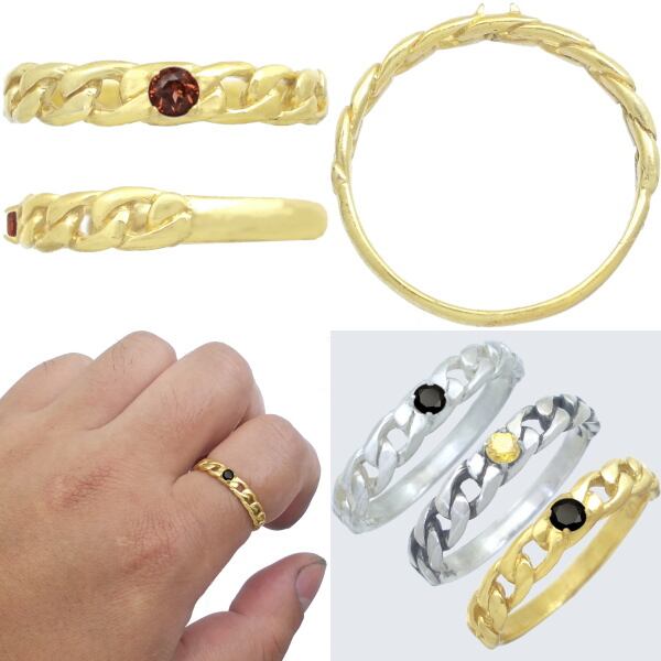 (1月)ガーネット セラミックゴールド ミディアム キヘイ シルバー リング 誕生石*SR-13