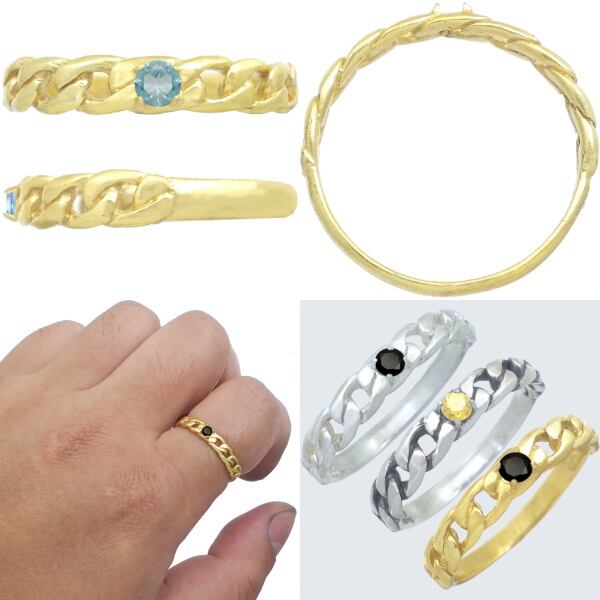 (11月)ブルートパーズ セラミックゴールド ミディアム キヘイ シルバー リング 誕生石*SR-13