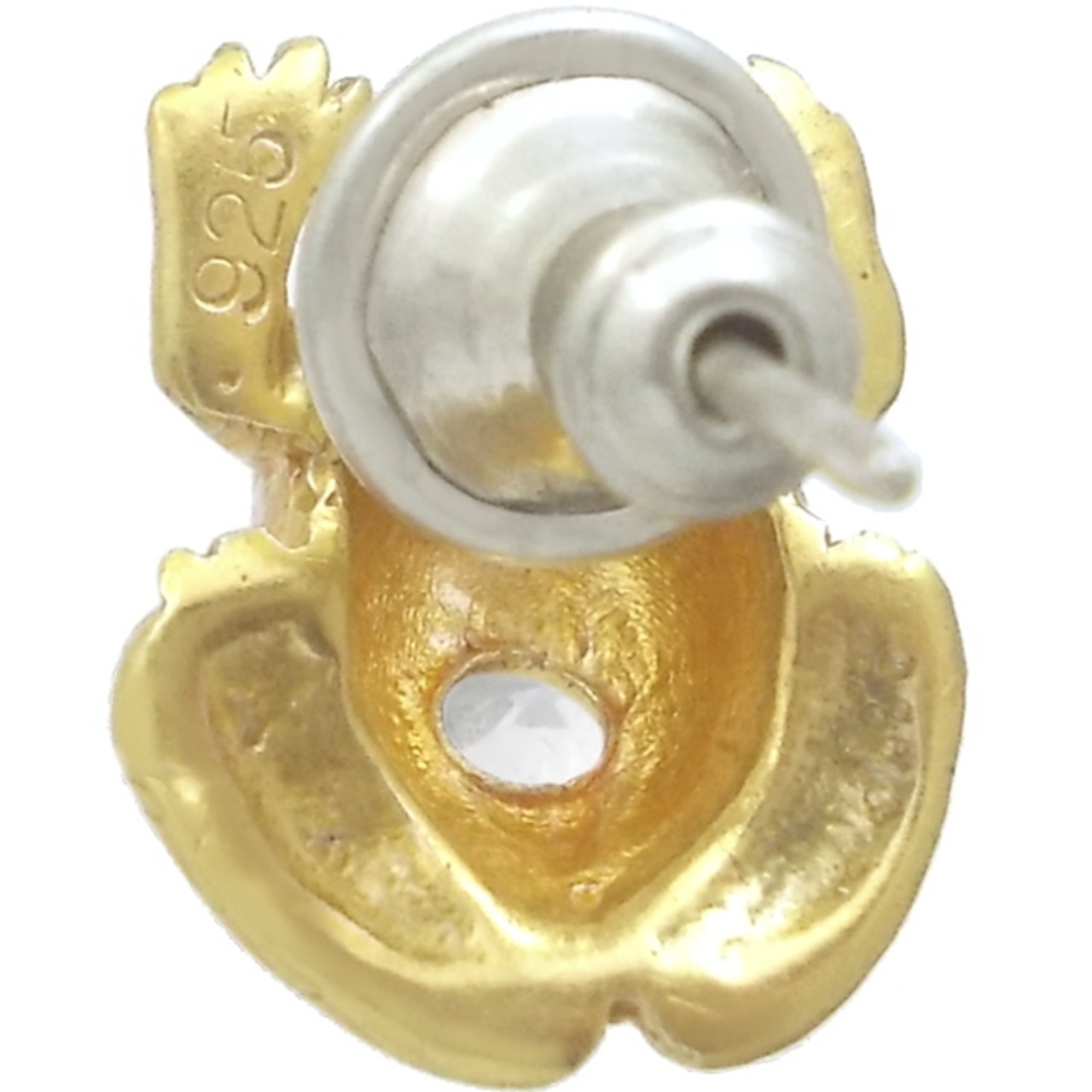 (4月)ジルコニア ゴールドコートブラック フロッグ シルバー ピアス 誕生石*BE-1043