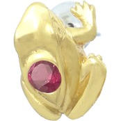 セラミックゴールドをコーティングしたかえるのデザイン。無事帰る、福カエルなどの縁起が良いと言われる蛙モチーフと誕生石を含むストーンとの幸運のコンビネーション。