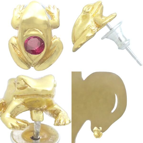 (7月)ルビー ゴールドコートブラック フロッグ シルバー ピアス 誕生石*BE-1043