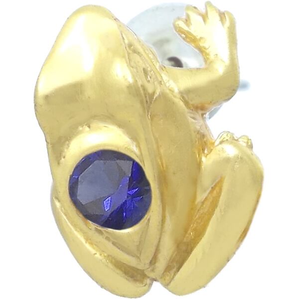 セラミックゴールドをコーティングしたかえるのデザイン。無事帰る、福カエルなどの縁起が良いと言われる蛙モチーフと誕生石を含むストーンとの幸運のコンビネーション。