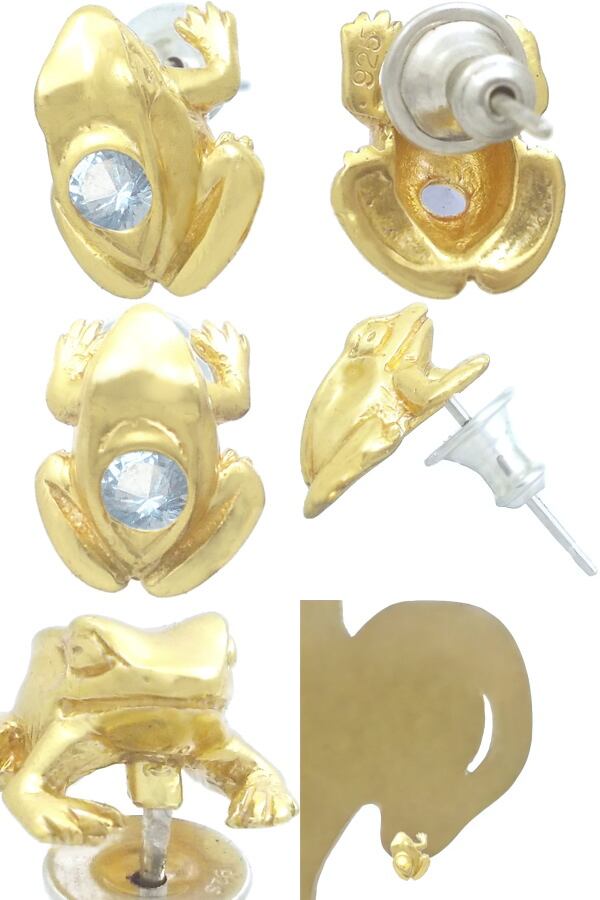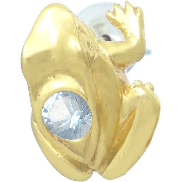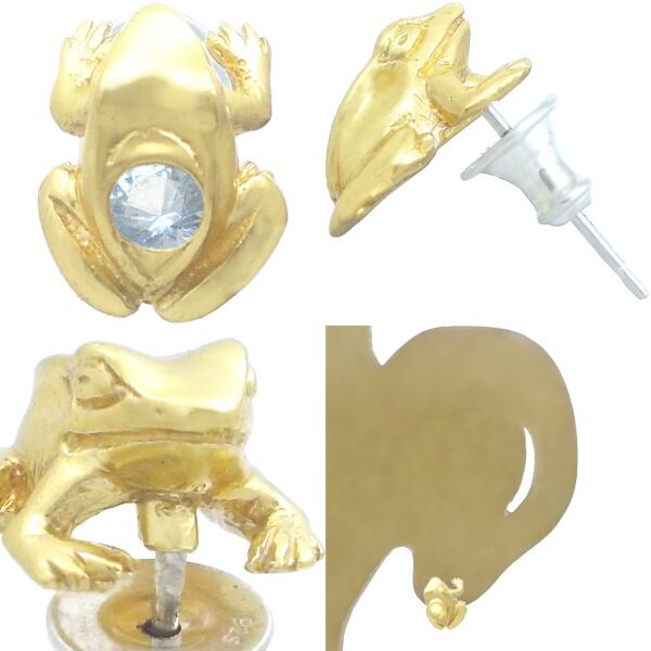 セラミックゴールドをコーティングしたかえるのデザイン。無事帰る、福カエルなどの縁起が良いと言われる蛙モチーフと誕生石を含むストーンとの幸運のコンビネーション。
