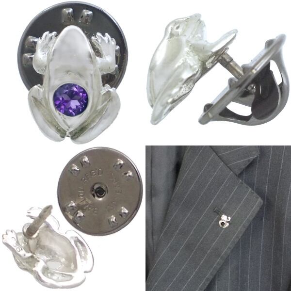 (9月)サファイア ホワイト フロッグ シルバーピンバッジ ピンズ 誕生石*BK-1141