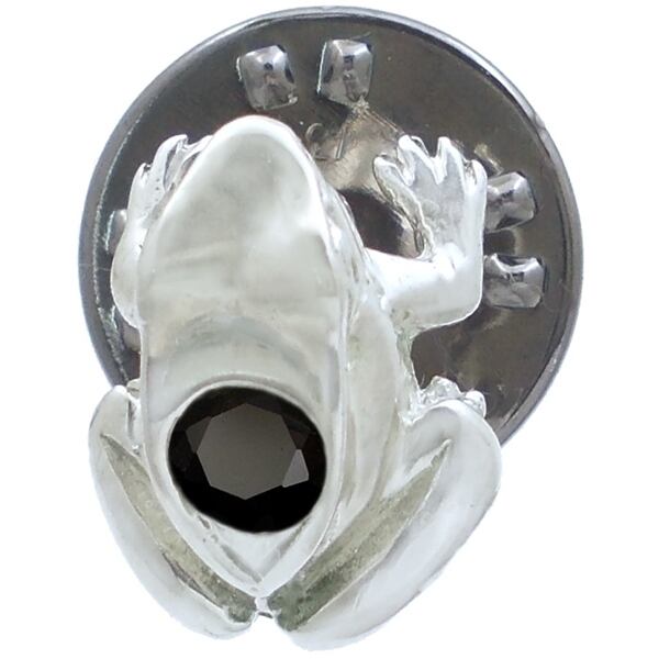 ブラックCZ ホワイト フロッグ シルバーピンバッジ ピンズ*BK-1141
