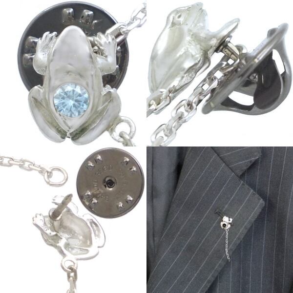 (3月)アクアマリン ホワイト フロッグ チェーン シルバーピンバッジ ピンズ 誕生石*BK-1142