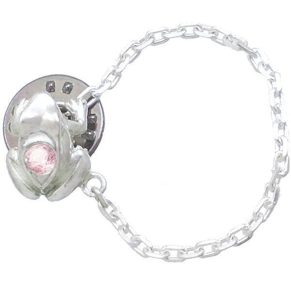 (10月)ピンクトルマリン ホワイト フロッグ チェーン シルバーピンバッジ ピンズ 誕生石*BK-1142