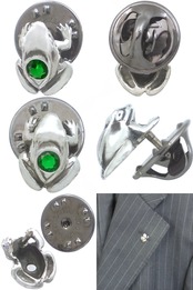 (5月)エメラルドグラス ブラック フロッグ シルバーピンバッジ ピンズ 誕生石*BK-1143