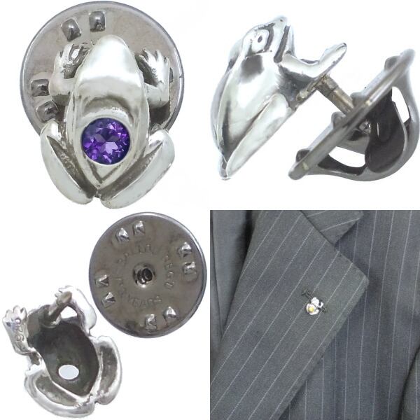 (9月)サファイア ブラック フロッグ シルバーピンバッジ ピンズ 誕生石*BK-1143
