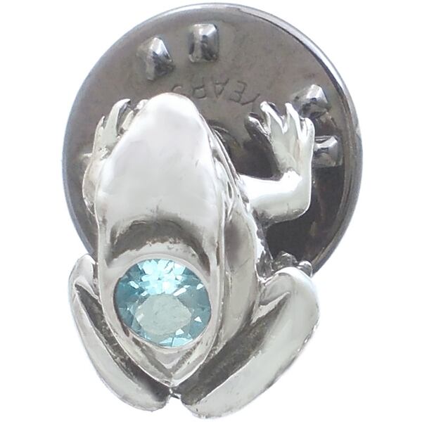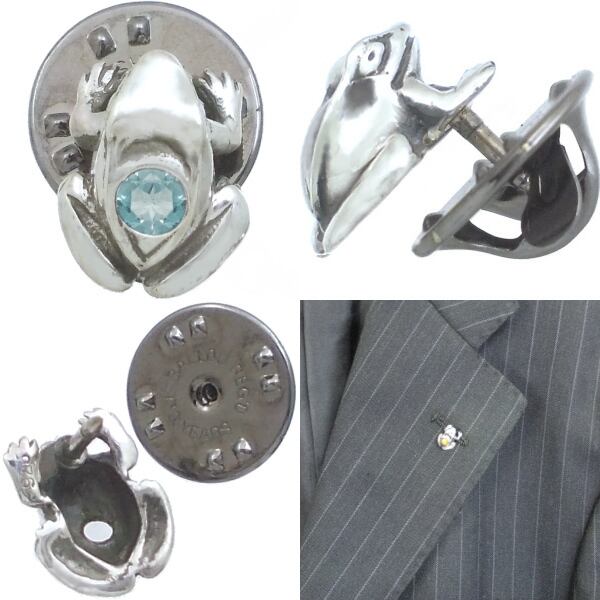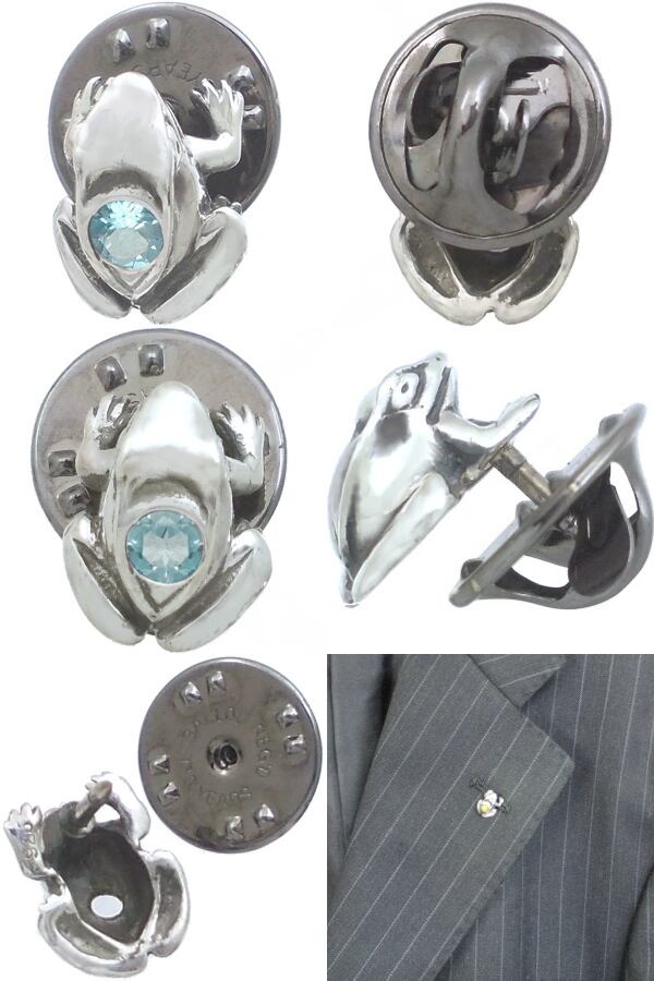 (11月)ブルートパーズ ブラック フロッグ シルバーピンバッジ ピンズ 誕生石*BK-1143