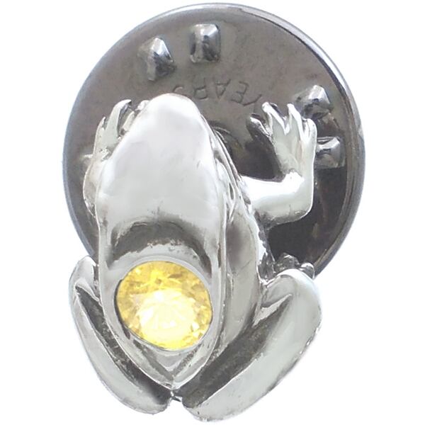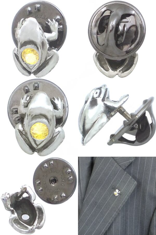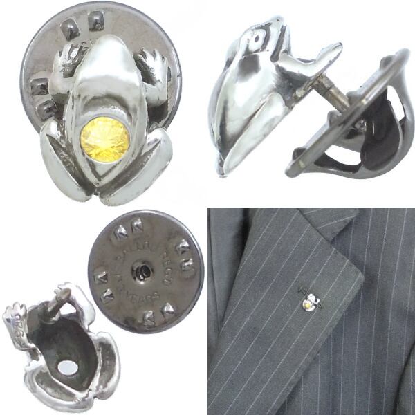イエローCZ ブラック フロッグ シルバーピンバッジ ピンズ*BK-1143