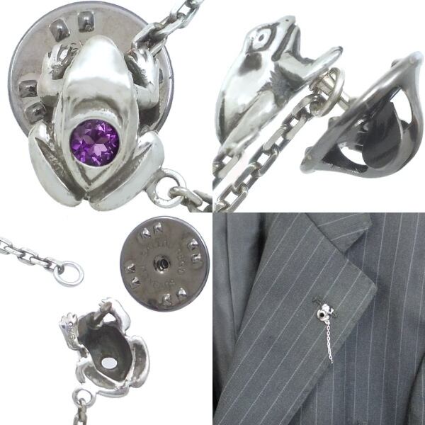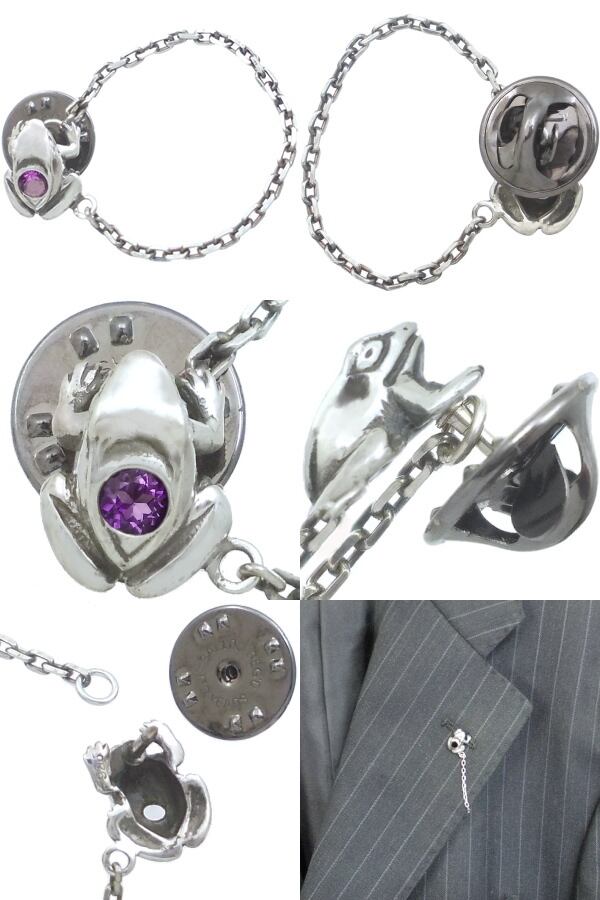 (2月)アメジスト ブラック フロッグ チェーン シルバーピンバッジ ピンズ 誕生石*BK-1144 | シルバーアクセサリーバズショット