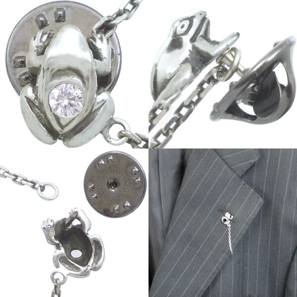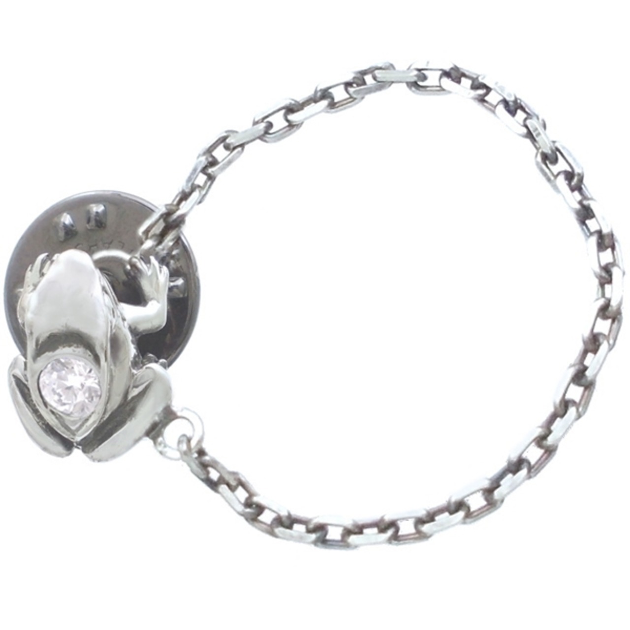(4月)ジルコニア ブラック フロッグ チェーン シルバーピンバッジ ピンズ 誕生石*BK-1144
