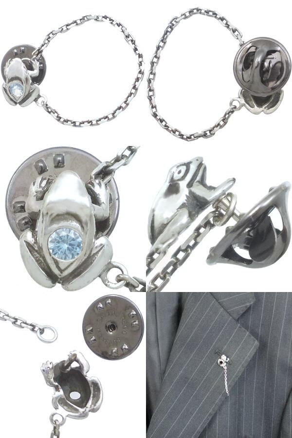 (12月)タンザナイト ブラック フロッグ チェーン シルバーピンバッジ ピンズ 誕生石*BK-1144