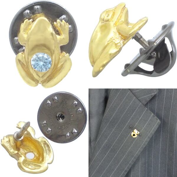 (3月)アクアマリン ブラック フロッグ シルバーピンバッジ ピンズ 誕生石*BK-1145