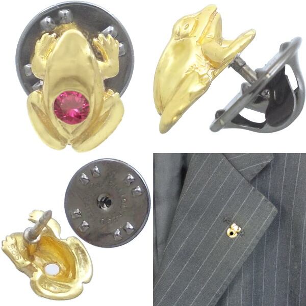 (7月)ルビー ブラック フロッグ シルバーピンバッジ ピンズ 誕生石*BK-1145