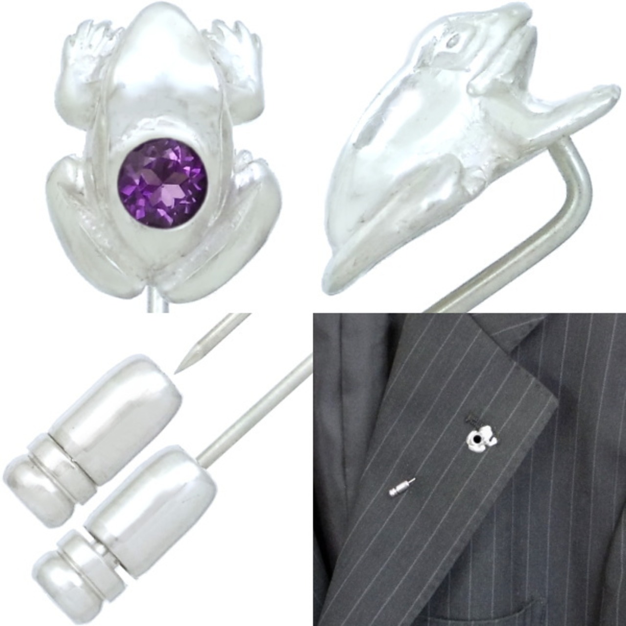 (2月)アメジスト ホワイト フロッグ シルバーラペルピン 誕生石*BK-1239