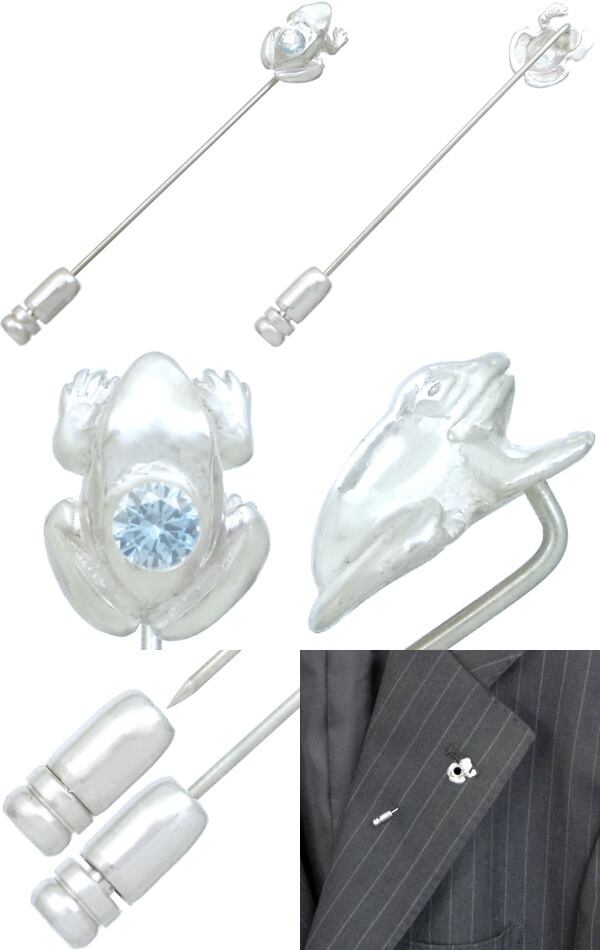 (3月)アクアマリン ホワイト フロッグ シルバーラペルピン 誕生石*BK-1239