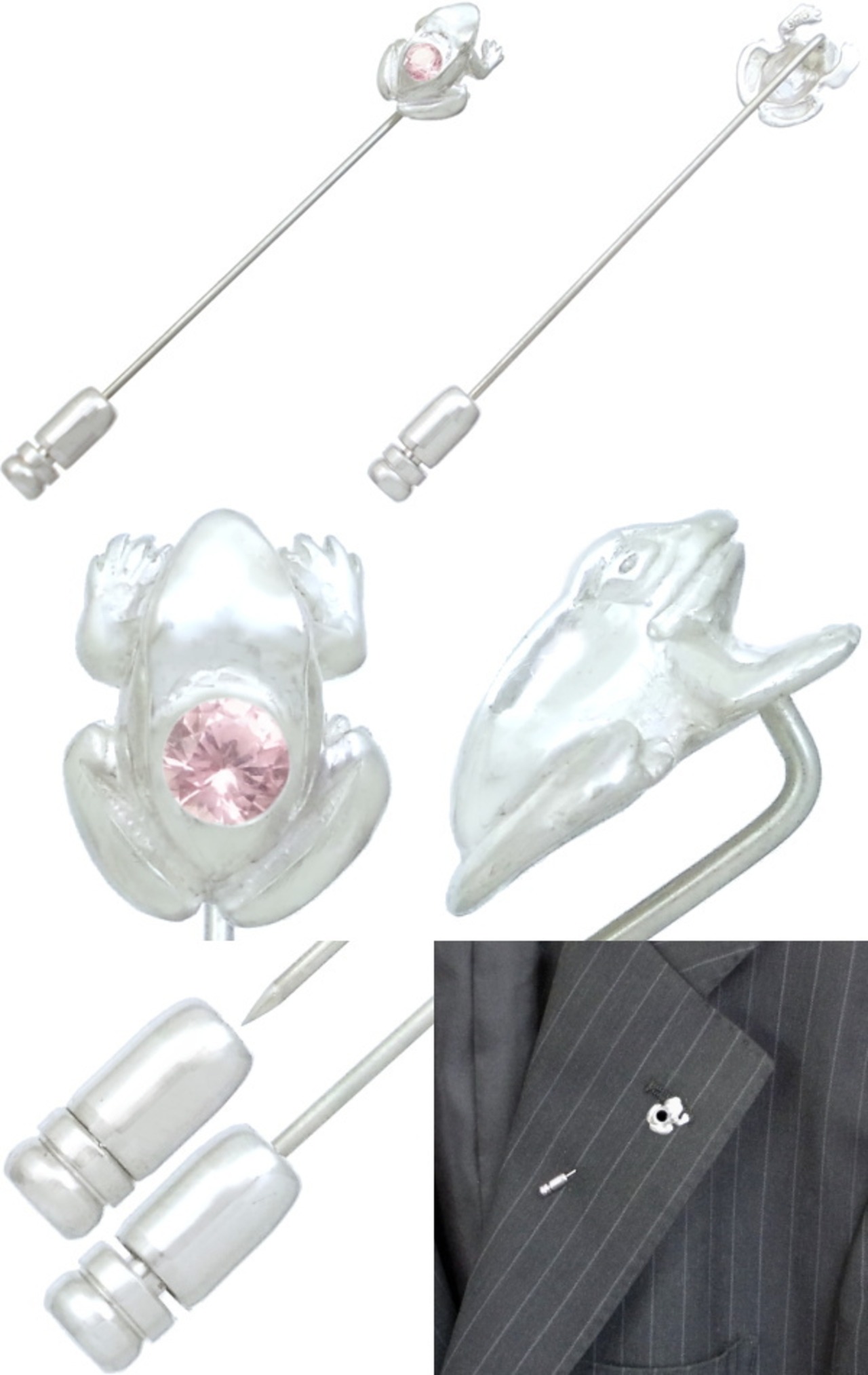 (10月)ピンクトルマリン ホワイト フロッグ シルバーラペルピン 誕生石*BK-1239