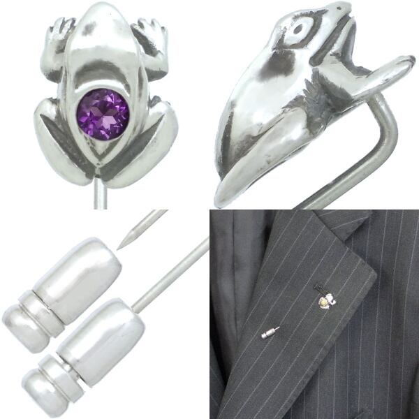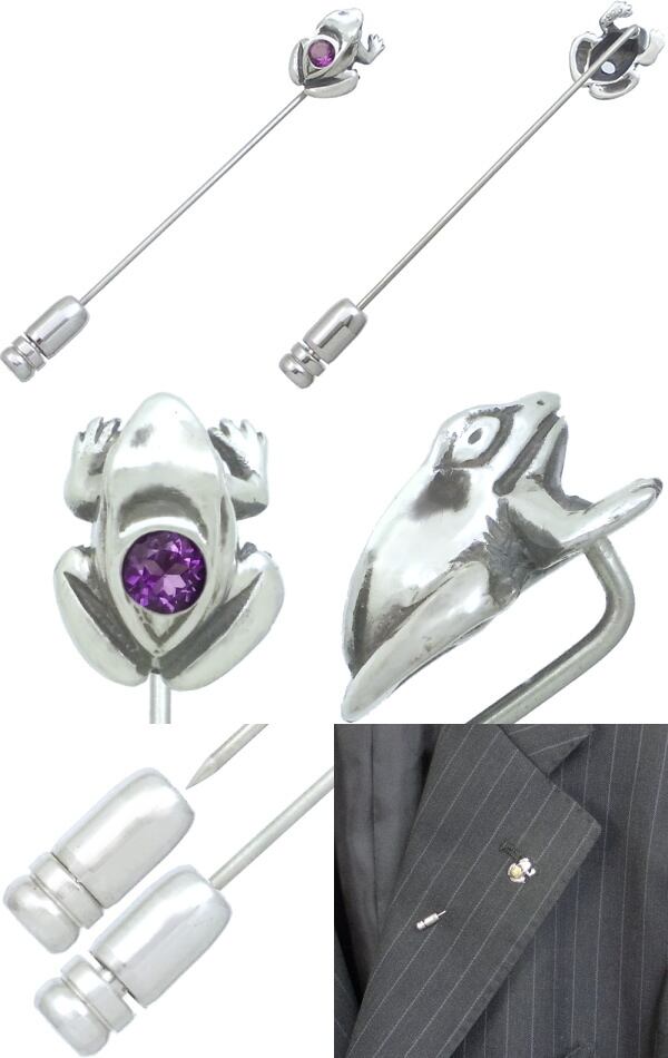 (2月)アメジスト ブラック フロッグ シルバーラペルピン 誕生石*BK-1240