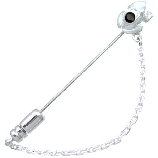 ブラックCZ ホワイト フロッグ チェーン シルバーラペルピン*BK-1241