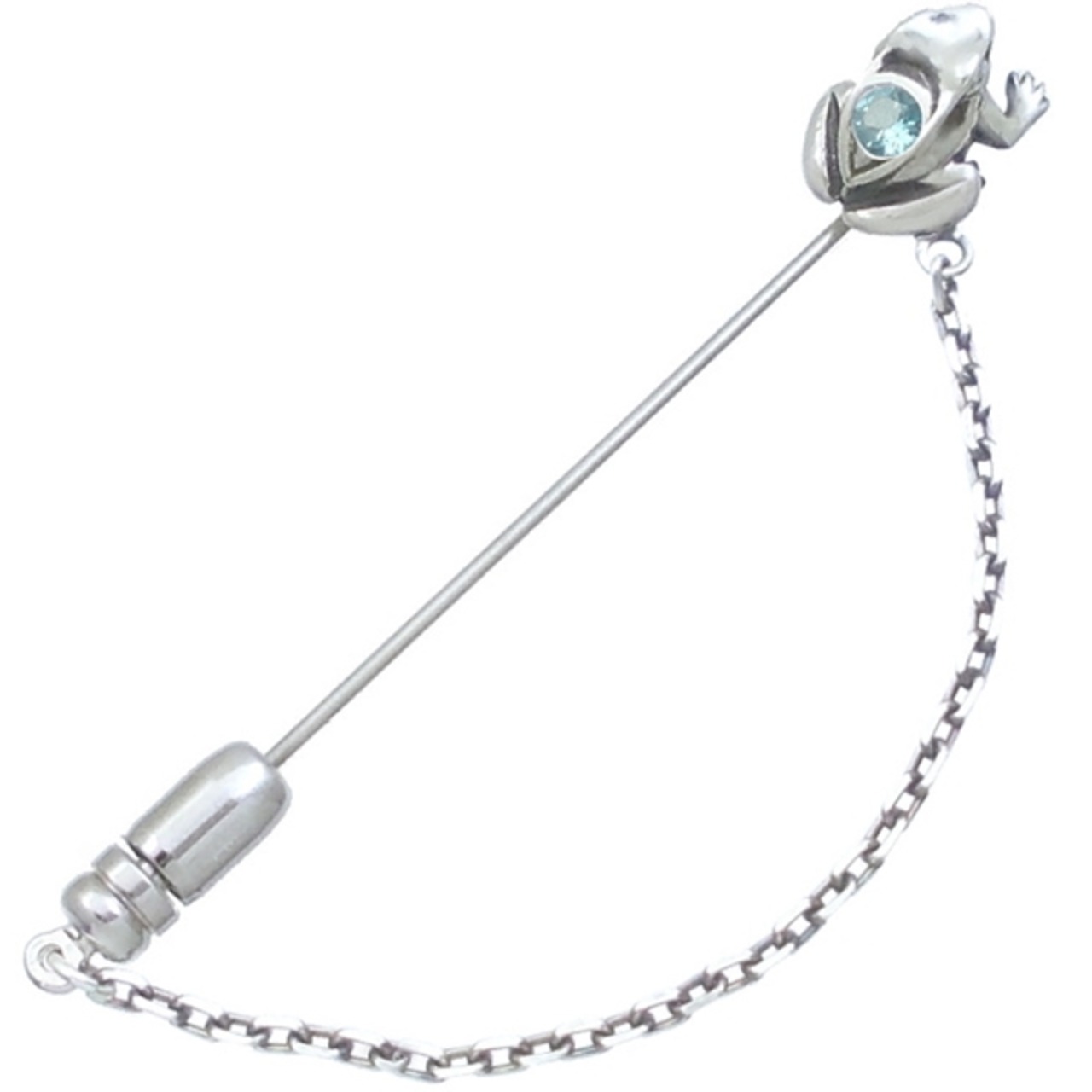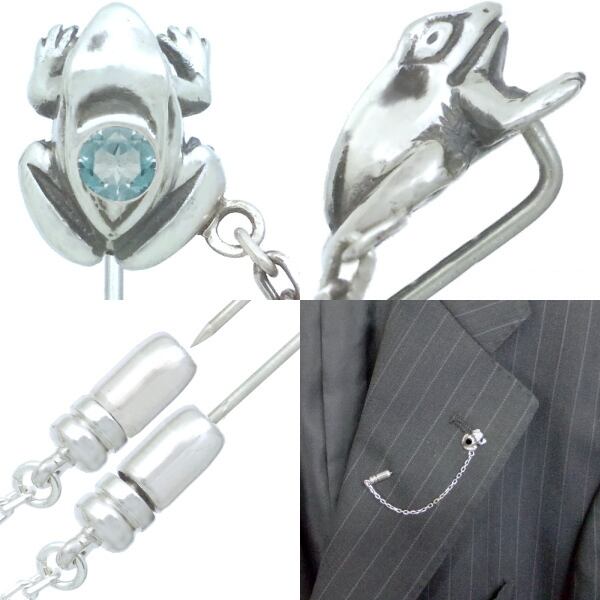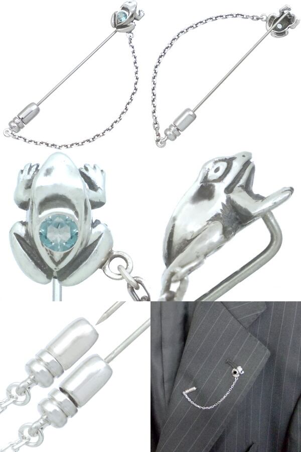 (11月)ブルートパーズ ブラック フロッグ チェーン シルバーラペルピン 誕生石*BK-1242