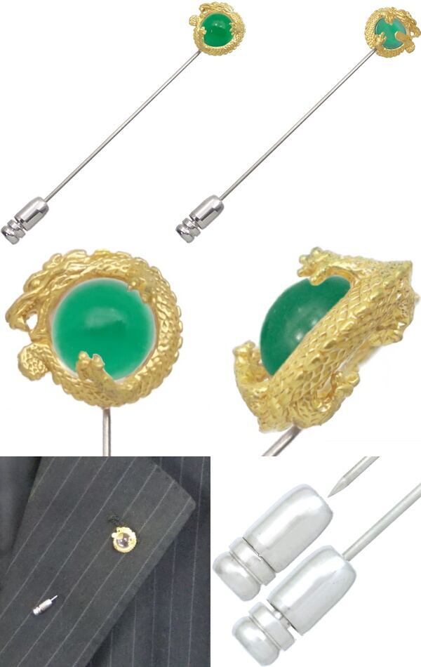 パワーの宿る天然石をシッカリと掴むセラミックゴールドコーティングのドラゴンが一際目を引くラペルピン。その強力なパワーで運気をもたらす象徴としても知られる龍と多様なストーンバリェーションとのコンビが楽しめるリアルなドラゴン&ストーン。