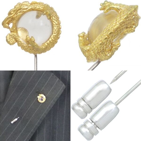 パワーの宿る天然石をシッカリと掴むセラミックゴールドコーティングのドラゴンが一際目を引くラペルピン。その強力なパワーで運気をもたらす象徴としても知られる龍と多様なストーンバリェーションとのコンビが楽しめるリアルなドラゴン&ストーン。