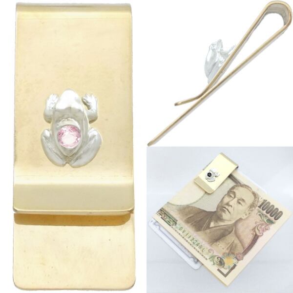 (10月)ピンクトルマリン ホワイト フロッグ スリム ブラスマネークリップ 誕生石*BM-1052