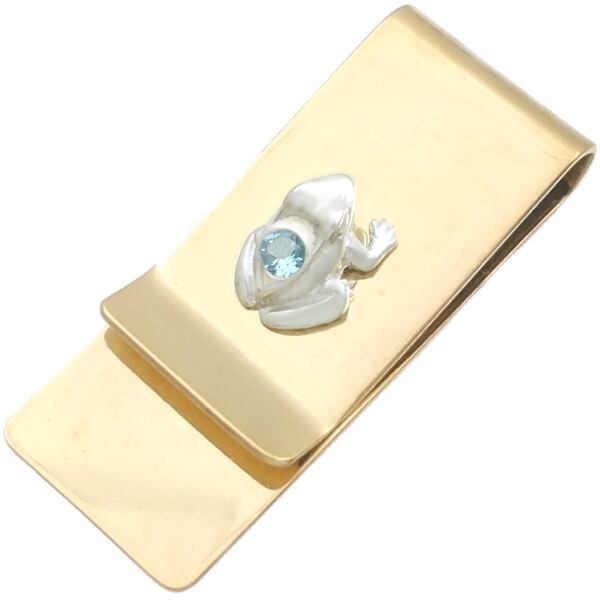 (11月)ブルートパーズ ホワイト フロッグ スリム ブラスマネークリップ 誕生石*BM-1052