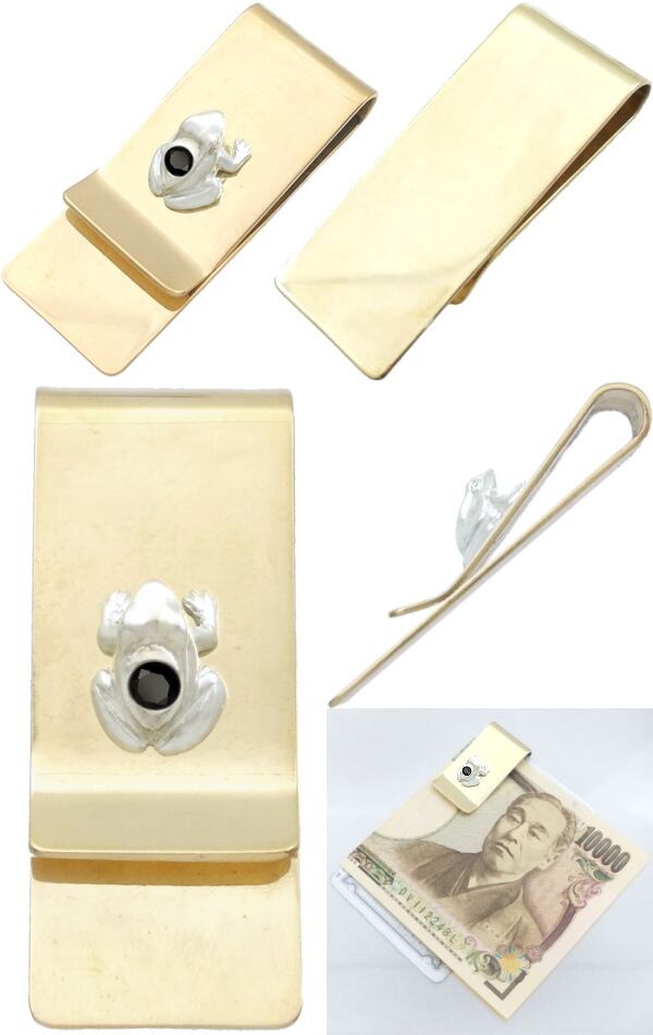 ブラックCZ ホワイト フロッグ スリム ブラスマネークリップ*BM-1052