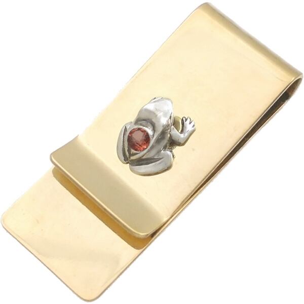 ★ホワイト仕上げと燻し仕上げのシルバーのカエルに誕生石をセッティングしたブラスマネークリップ。。