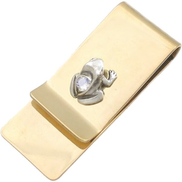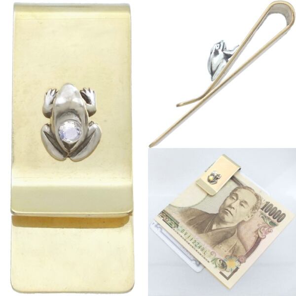★ホワイト仕上げと燻し仕上げのシルバーのカエルに誕生石をセッティングしたブラスマネークリップ。。